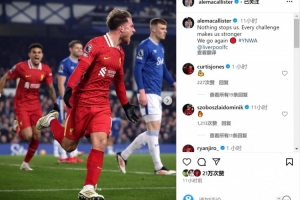 麥卡利斯特社媒曬出自己慶祝進(jìn)球的照片,配文:“沒有什么能阻擋我們,每一次挑戰(zhàn)都讓我們更加強(qiáng)大。我們?cè)俅纬霭l(fā)。”