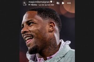 邁尼昂也在今日通過社媒曬出自己的苦笑照,并配文:“辦公室里的糟糕一天……”