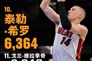 至此,希羅生涯總得分來到了6364分,超越了戈蘭-德拉季奇,升至熱火隊史第十,將追趕哈斯勒姆(6586分)。