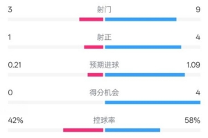 控球率42%-58%