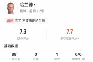 體育資訊2月16日訊 曼城在本輪英超4-0領(lǐng)先紐卡,哈蘭德本場(chǎng)數(shù)據(jù)如下: