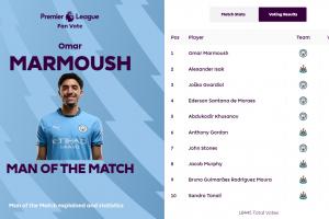 英超官方賽后宣布,馬爾穆什被球迷票選為本場(chǎng)比賽全場(chǎng)最佳,得票率高達(dá)82.5%。