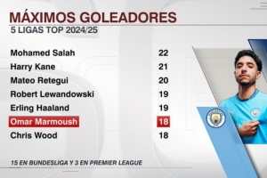 據(jù)ESPN統(tǒng)計(jì),馬爾穆什本賽季在聯(lián)賽中打進(jìn)18球,并列排名本賽季五大聯(lián)賽射手榜第6位。