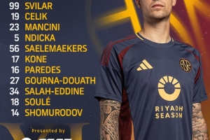 羅馬首發(fā):99-斯維拉爾、19-切利克、23-詹盧卡-曼奇尼、5-恩迪卡、56薩勒馬科爾斯、17-科內(nèi)、16-帕雷德斯、27-杜亞斯、34-薩拉赫-埃丁、18-蘇萊、14-肖穆羅多夫