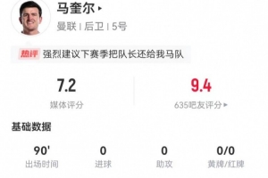 體育資訊2月17日訊 曼聯在本輪英超0-1不敵熱刺,馬奎爾本場數據如下: