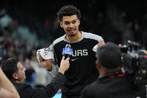 文班亞馬本場(chǎng)出戰(zhàn)35分29秒,14投7中,三分6中3,罰球2中2,輕松砍下19分7籃板6蓋帽4助攻,正負(fù)值+3。