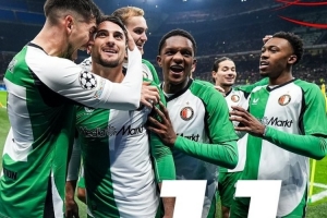 體育資訊2月19日訊 費耶諾德在本輪歐冠客場1-1逼平米蘭,總比分2-1晉級歐冠十六強(qiáng)戰(zhàn)。