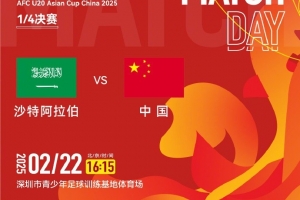 2月22日16:15,中國(guó)隊(duì)將在U20亞洲杯四分之一決賽中迎戰(zhàn)沙特阿拉伯隊(duì),比賽勝者將晉級(jí)U-20世界杯。中國(guó)隊(duì)加油!