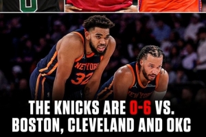 值得一提的是,尼克斯本賽季對(duì)陣聯(lián)盟前三騎士、雷霆和凱爾特人時(shí)0勝6負(fù)未嘗一勝。