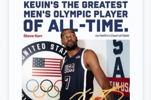 體育資訊2月23日訊 近日,勇士主帥科爾在接受采訪時(shí)表示,杜蘭特是奧運(yùn)會(huì)有史以來(lái)最偉大的男子運(yùn)動(dòng)員。