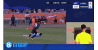 比賽第23分鐘,王大雷沖出禁區(qū)解圍沒(méi)踢到皮球,但踢翻了對(duì)方球員劉鑫瑜,主裁判一開(kāi)始出示黃牌,隨后去場(chǎng)邊查看VAR,取消黃牌,將王大雷直紅罰下。