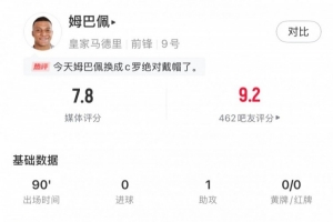 體育資訊2月24日訊 本輪西甲,皇馬2-0赫羅納。姆巴佩全場數(shù)據(jù):