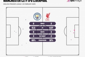 體育資訊2月24日訊 半場結(jié)束,利物浦暫時(shí)2-0領(lǐng)先曼城。