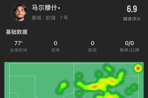 傳球數(shù)據(jù):51次觸球,26次傳球,傳球成功率88.5%
