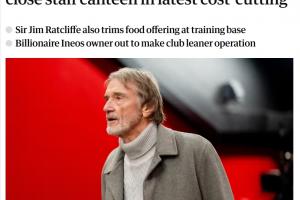 體育資訊02月24日訊 據(jù)《衛(wèi)報(bào)》報(bào)道,拉特克利夫爵士將關(guān)閉老特拉福德球場(chǎng)的員工食堂,用水果取代目前提供的免費(fèi)午餐。