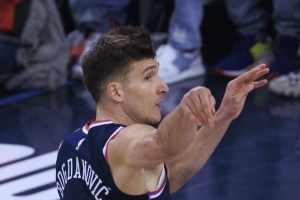 第一節(jié),快船后衛(wèi)博格丹-博格達(dá)諾維奇手感冰涼,首發(fā)出戰(zhàn)8分鐘4投0中,三分2中0一分未得,有1次助攻。
