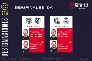 體育資訊2月25日訊 西班牙足協(xié)日前公布了國王杯兩場(chǎng)半決賽首回合的裁判名單,具體如下: