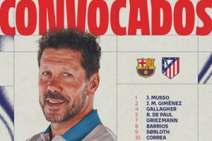 前鋒:格列茲曼、索爾洛特、安赫爾-科雷亞、阿爾瓦雷斯、朱利亞諾-西蒙尼