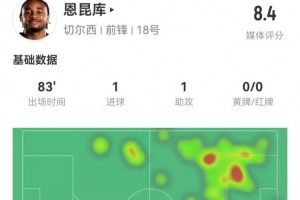 體育資訊2月26日訊 切爾西在本輪英超4-0領(lǐng)先南安普頓,恩昆庫本場數(shù)據(jù)如下:
