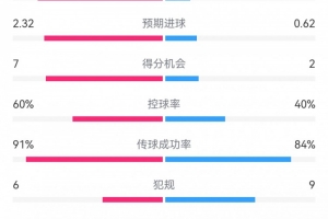 下一篇: 帕爾默全場數(shù)據(jù):7次射門3次射正,2次錯失絕佳機會