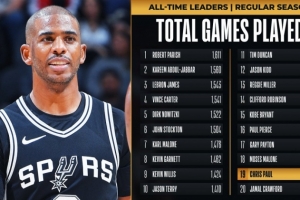 這樣一來,保羅NBA生涯常規(guī)賽出場數(shù)達(dá)到1328場,超越賈馬爾-克勞福德(1327),獨占NBA歷史第19位!