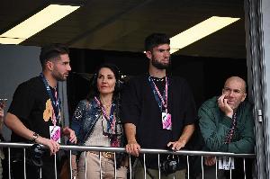 左起:盧卡-齊達(dá)內(nèi)、齊達(dá)內(nèi)妻子、恩佐齊達(dá)內(nèi)、齊達(dá)內(nèi)