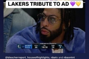 體育資訊2月27日訊?昨日湖人迎戰(zhàn)獨(dú)行俠,湖人主場播放視頻致敬安東尼-戴維斯。