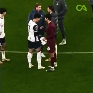 比賽結(jié)束后,孫興慜與胡桑諾夫寒暄擁抱致意。