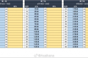 三輪賽畢(5月底)將會組織第二次抽簽,以混抽方式?jīng)Q定后續(xù)對陣。