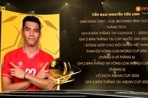 當(dāng)?shù)貢r(shí)間26日晚間在胡志明市舉辦的越南足球2024年頒獎(jiǎng)典禮上,阮進(jìn)靈首次贏得了越南足球男子金球獎(jiǎng)。