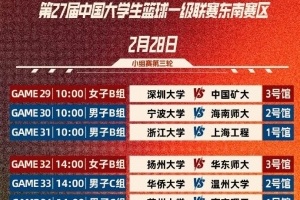 明日將迎來小組賽第三日,多支隊伍迎來生死戰(zhàn),男籃方面上海工程、南京理工、合肥師院、江西師大均未嘗勝果,再輸一場將有可能提前結束東南賽區(qū)之旅。女籃方面,揚州大學華東師大將爭奪賽季首勝。