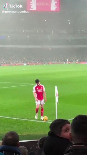 準(zhǔn)備發(fā)角球的阿森納中場(chǎng)賴斯聽到客隊(duì)球迷的歌聲,忍不住偷偷笑了起來。