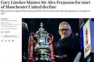 體育資訊03月03日訊 英格蘭名宿、評(píng)論員萊因克爾在評(píng)述時(shí)表示,曼聯(lián)如今衰落的原因可以追溯到2013年弗格森的離任。