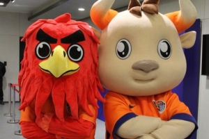 同青島·共榮耀,在3月1日海牛主場迎戰(zhàn)深圳新鵬城的比賽中,不少國信男籃的球迷來到青春足球場為青島海牛加油助威,國信男籃的吉祥物“雄鷹”也與“犇犇”進(jìn)行了親密的互動。
