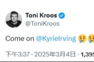 德國足壇傳奇球星托尼-克羅斯發(fā)文為其祈禱:Come on @KyrieIrving??????(加油,歐文)