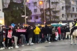 報(bào)道稱,馬競(jìng)球迷在抵達(dá)伯納烏球場(chǎng)時(shí)引起了騷亂,盡管國(guó)家警察已經(jīng)控制了下午聚集在卡斯蒂亞廣場(chǎng)準(zhǔn)備步行前往球場(chǎng)的馬競(jìng)球迷,但在他們進(jìn)入伯納烏球場(chǎng)時(shí),卻無差別的向場(chǎng)內(nèi)人群投擲雜物。