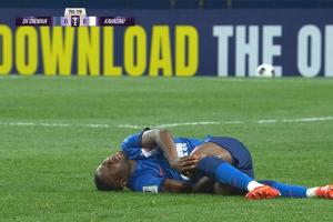體育資訊03月05日訊 申花vs川崎比賽第71分鐘,阿馬杜拼搶中扭傷膝蓋,被擔(dān)架抬下場(chǎng)。