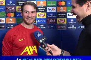 賽后,麥卡利斯特接受采訪談及本月阿根廷vs巴西的世預(yù)賽,麥卡開玩笑:“我們得在他(阿利森)食物里放點(diǎn)東西,在他出發(fā)之前做點(diǎn)手腳。雖然他總是全力以赴,但希望他到時(shí)候別像今天這么神勇?!?/p>