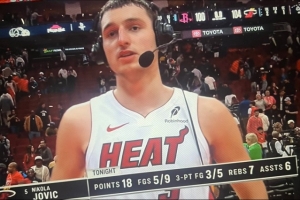 此役,希羅17中10,三分球7中3,罰球7中4,拿到27分6籃板9助攻;約維奇替補(bǔ)出戰(zhàn)31分鐘,投籃9中5,三分球5中3,罰球5中5,拿到18分7籃板6助攻。