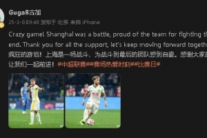 古加社媒:瘋狂的比賽?。ㄔ冢┥虾J且粓鰬?zhàn)斗,為戰(zhàn)斗到最后的團隊感到自豪。感謝大家的支持,讓我們一起前進(jìn)!