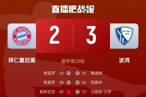 體育資訊3月9日訊 北京時(shí)間8日晚,德甲第25輪,拜仁主場2-3不敵波鴻。