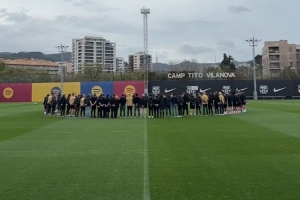 體育資訊3月9日訊 巴薩球員在今天的訓(xùn)練前為突然離世的球隊隊醫(yī)默哀。