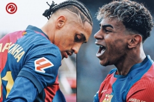 數(shù)據(jù)統(tǒng)計(jì)顯示,拉菲尼亞是本賽季西甲唯一在運(yùn)動(dòng)戰(zhàn)能夠創(chuàng)造機(jī)會(huì)50+的球員(57次),他在26輪聯(lián)賽貢獻(xiàn)13球7助攻;亞馬爾本賽季成功過人高達(dá)95次,比其他西甲球員至少多出23次,也是本賽季西甲唯一助攻上雙的球員(11次)。
