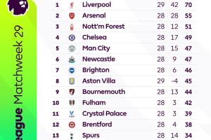 一切皆有可能??英超第三名和第九名只差7分 ???
