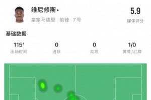 體育資訊3月13日訊 歐冠1/8決賽次回合,馬競(jìng)對(duì)陣皇馬。維尼修斯在比賽第115分鐘被換下,維尼修斯本場(chǎng)數(shù)據(jù):