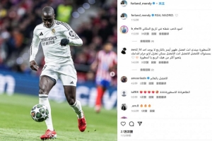 費(fèi)蘭-門迪曬出自己的比賽照,并配文:“皇家馬德里??”