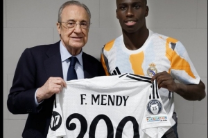 本場(chǎng)比賽也是門(mén)迪代表皇馬各項(xiàng)賽事第200次出場(chǎng),球隊(duì)官方也曬出門(mén)迪與主席弗洛倫蒂諾的合照,祝賀他達(dá)成這一里程碑。