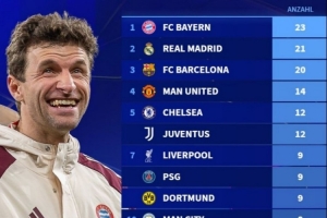 體育資訊3月13日訊 本賽季歐冠8強(qiáng)產(chǎn)生,傳統(tǒng)豪門皇馬、巴薩、拜仁均在列,三支球隊(duì)也是歐冠改制后晉級8強(qiáng)次數(shù)最多的球隊(duì),以下為具體次數(shù)榜: