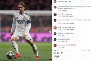 體育資訊3月14日訊 皇馬在本輪歐冠點球淘汰馬競,老將莫德里奇首發(fā)出戰(zhàn)并在賽后通過社媒紀念。