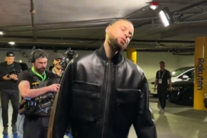 賽前,“壽星公”庫(kù)里一襲黑色勁裝走入球館,經(jīng)典“歪頭殺”再現(xiàn)。